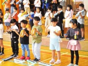 |  2月15日(木)5時間目に、1年生は「できるようになったよ発表会」をしました。1年間を振り返ってできるようになったことを話し合い、グループに分かれて練習をしました。グループごとに縄跳びや音読、計算や鍵盤ハーモニカなど、一生懸命練習していました。当日は、たくさんのおうちの方が見守る中、練習の成果を十分に発揮する姿が見られました。教室には、「緊張したなあ。」という声や、やりきったぞ!という笑顔があふれていました。 |  |  |