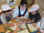 |  9月29日(金)に、三条凧協会の皆様からご指導をいただき、大凧をあげました。最初大凧をあげるためには、かなりの力で引っ張らなければいけないことにびっくりしていました。徐々にコツを掴み、互いに「糸を出して!」「引っ張って」と声を掛け合いながら凧を高くあげていました。とても貴重な体験をすることができました。