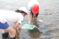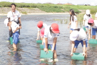 |  理科「流れる水のはたらき」の学習の一環で、五十嵐川に行ってきました。川の流れにボードを当てることで、水の流れを体感したり、石の様子を観察したりし、教科書で学習したことを自分たちの目で再確認することができました。子どもたちは、楽しみながらも真剣に取り組んでいました。 |  |  |