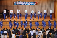 | 運動会の応援団結団式を行い、赤白の応援団員が決意発表やエールを行いました。昼休みには縦割り班「若草班」ごとに「三条凧ばやし」を練習し、運動会ムードが高まってきました。来週には、全校での運動会練習が始まります。一人一人が達成感を味わえるように、目標をもって練習に取り組めるようにしていきます。 |