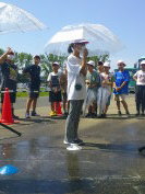 |  1年生は、生活科の学習で水遊びをしました。ケチャップやマヨネーズの容器やペットボトルなどを使って友達と水をかけあいました。容器によって水の出方が違うことに気付き、「これは一気に水がいっぱい出るよ!」「これは勢いよく水が飛ばせて面白い!」と楽しみながら学習していました。短い活動時間ではありましたが、活動後に書いた絵日記を見ると、充実した時間を過ごせたことが伝わってきました。 |  |  |