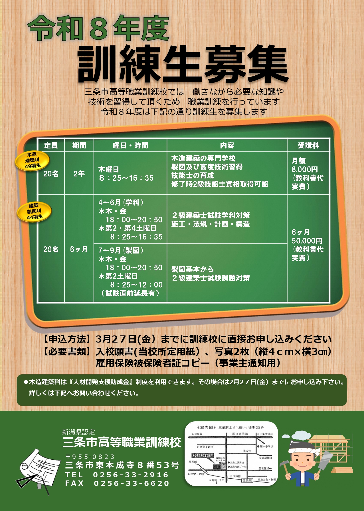 令和8年3月27日(金曜日)までに訓練校へ直接お申し込みください。